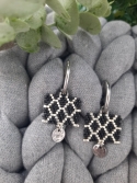 Χειροποίητα σκουλαρίκια κεντημένα με χάντρες miyuki σε αποχρώσεις του ασημένιου και του μαύρου με κρεμαστό ατσάλινο φλουράκι.