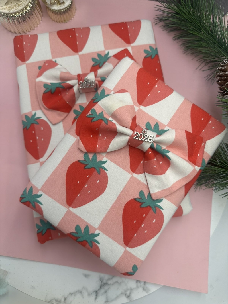 Χειροποίητο Μοναδικό Μεγάλο Εβδομαδιαίο Ημερολόγιο 2026 .Ρόζ κόκκινο Με φράουλες και ασορτί Φιόγκο.